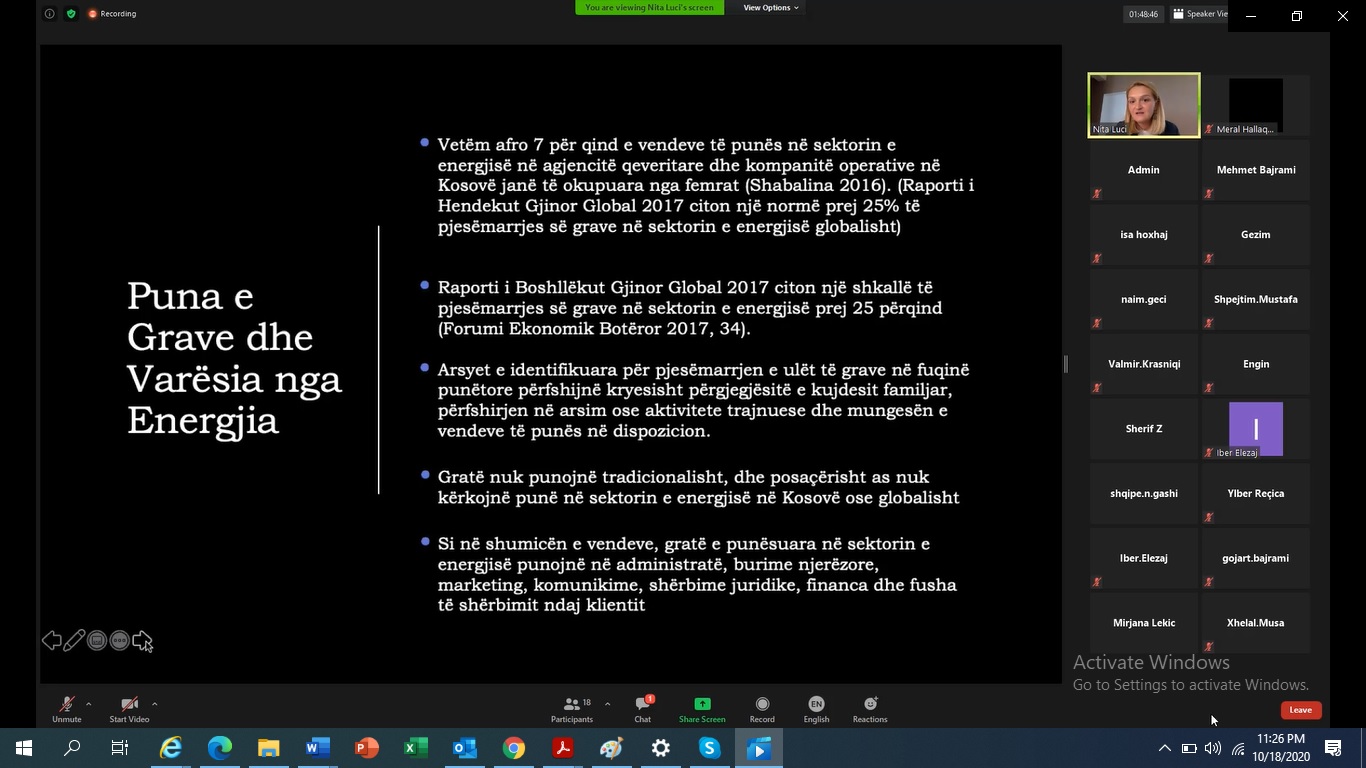 Taking into consideration the profile of the participants and the general objective, the training session presents the introduction of overlapping gender legislation and policies in the country (specifically Law on Gender Equality, Kosovo Program for Gender Equality) and municipal plans for the development and implementation on energy efficiency.